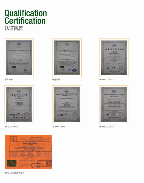 《ISO22000:2005標(biāo)準(zhǔn)認(rèn)證》;
